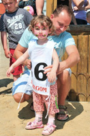 | W zawodach konnych wystartowało prawie 200 dzieci w różnych przedziałach wiekowych. Najbardziej liczna i prężna była najmłodsza grupa. Mali jeźdźcy mieli do pokonania tor przeszkód. Trzeba było przejechać po belkach, pokonać slalomem beczki i przeskoczyć przeszkodę. |